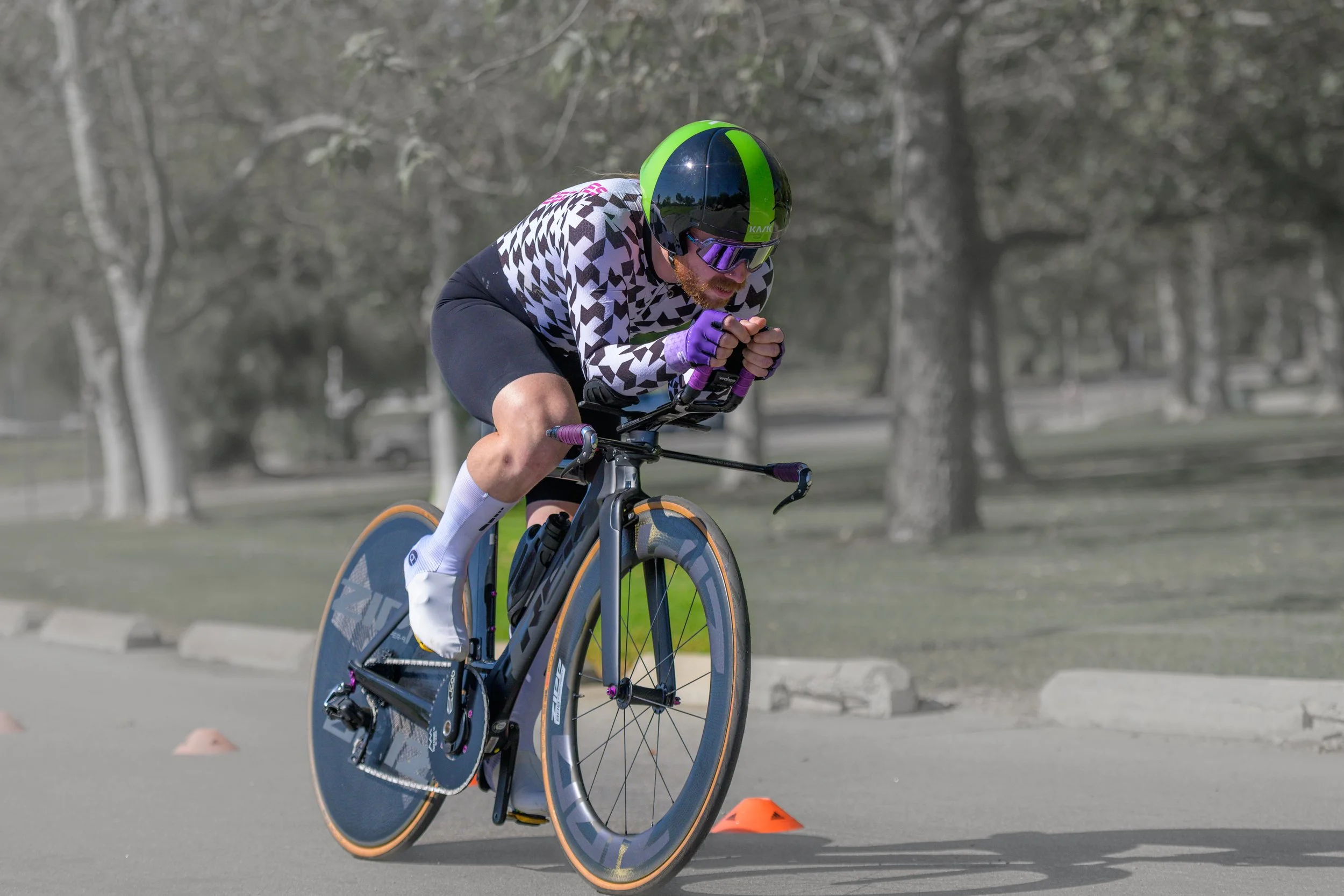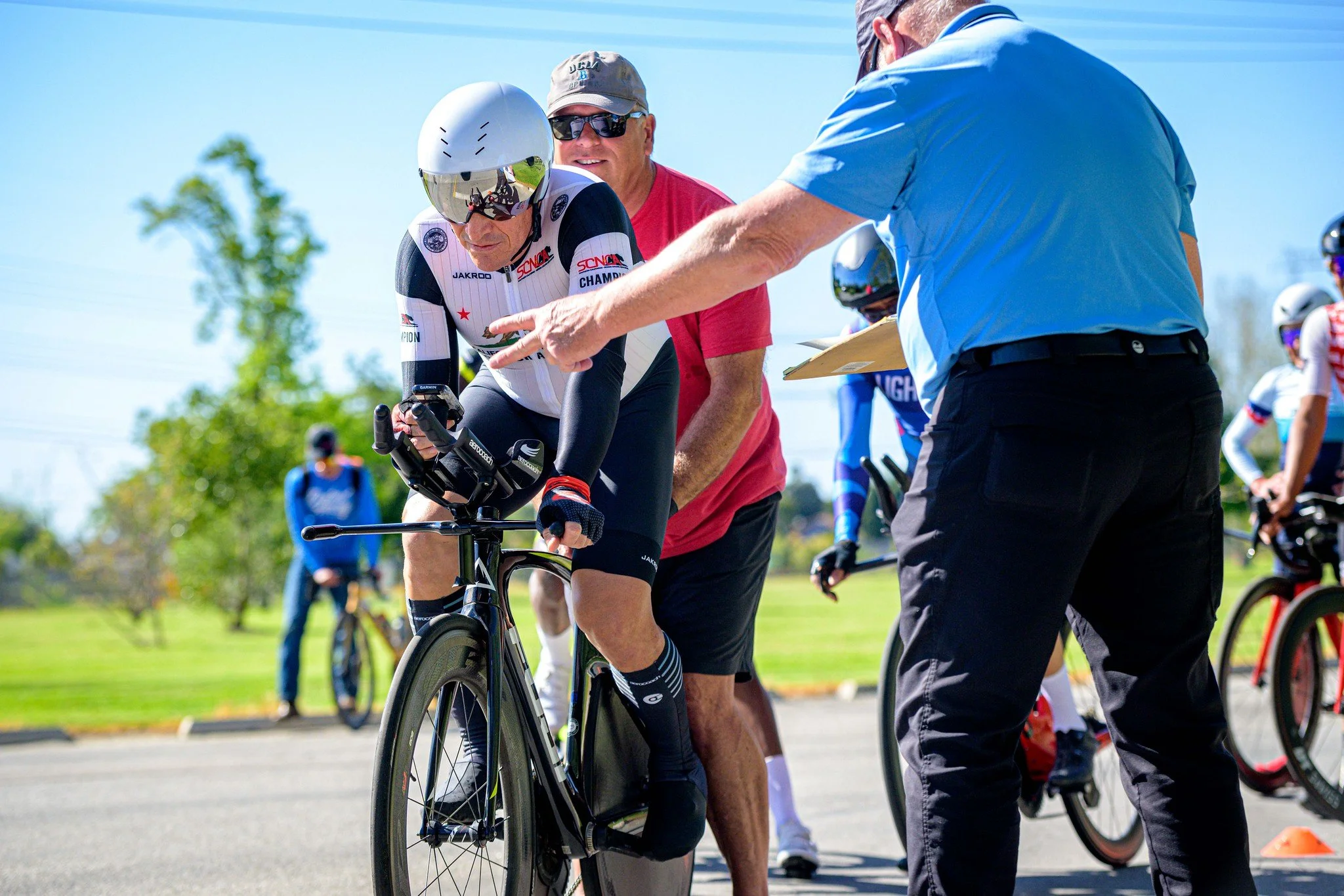 Each rider starts individually and races the same course. No drafting, no tactics — just pacing, aerodynamics, and mental focus.